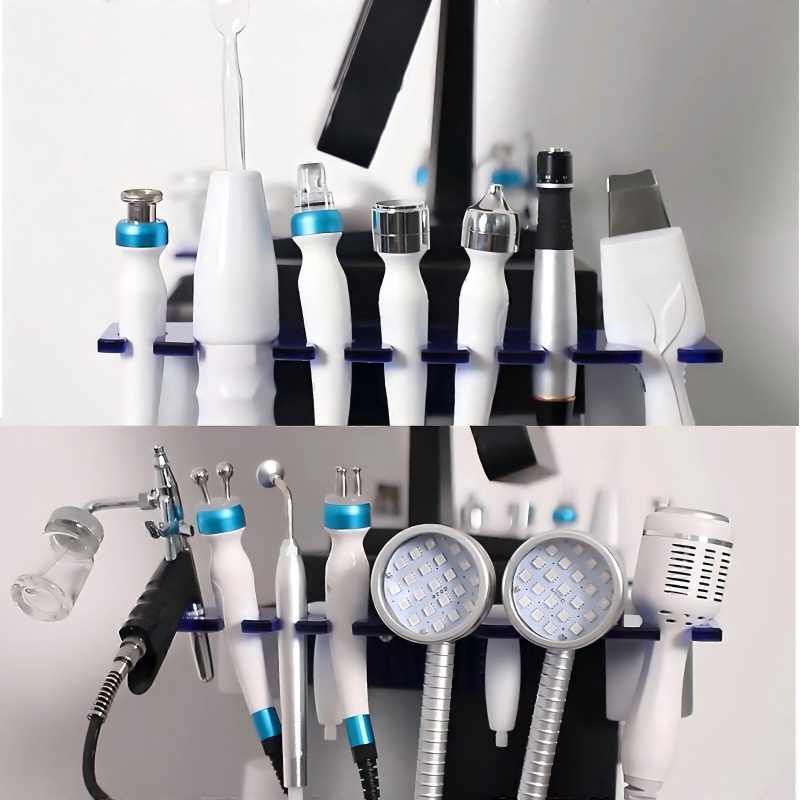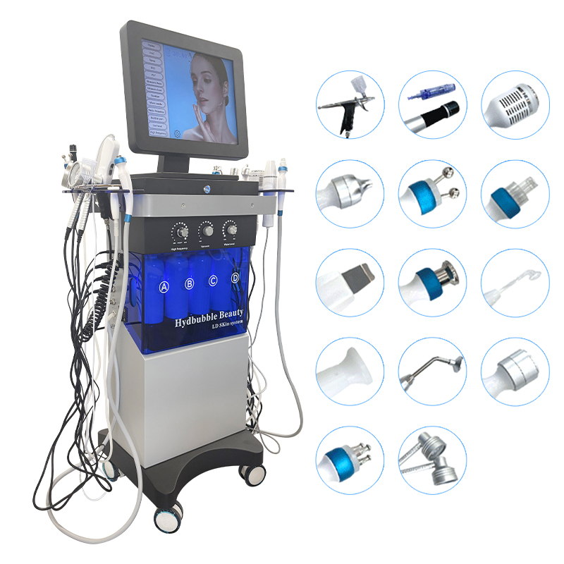 The AquaRenew 14-in-1 integrates multiple advanced skincare technologies in one machine. Key modalities include: cold therapy, high-frequency treatment, LED light therapy, radiofrequency tightening, bubble exfoliation, diamond microdermabrasion, ultrasound therapy, oxygen infusion, and more. Each function works to exfoliate, cleanse, improve product absorption, stimulate collagen, tighten skin, and address concerns such as acne, inflammation, and pigmentation. Together, these treatments provide a comprehensive approach for healthier, youthful, and revitalized skin.